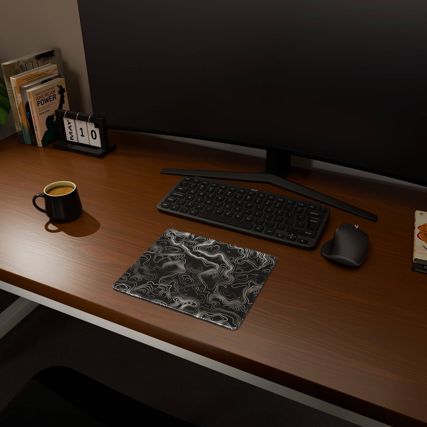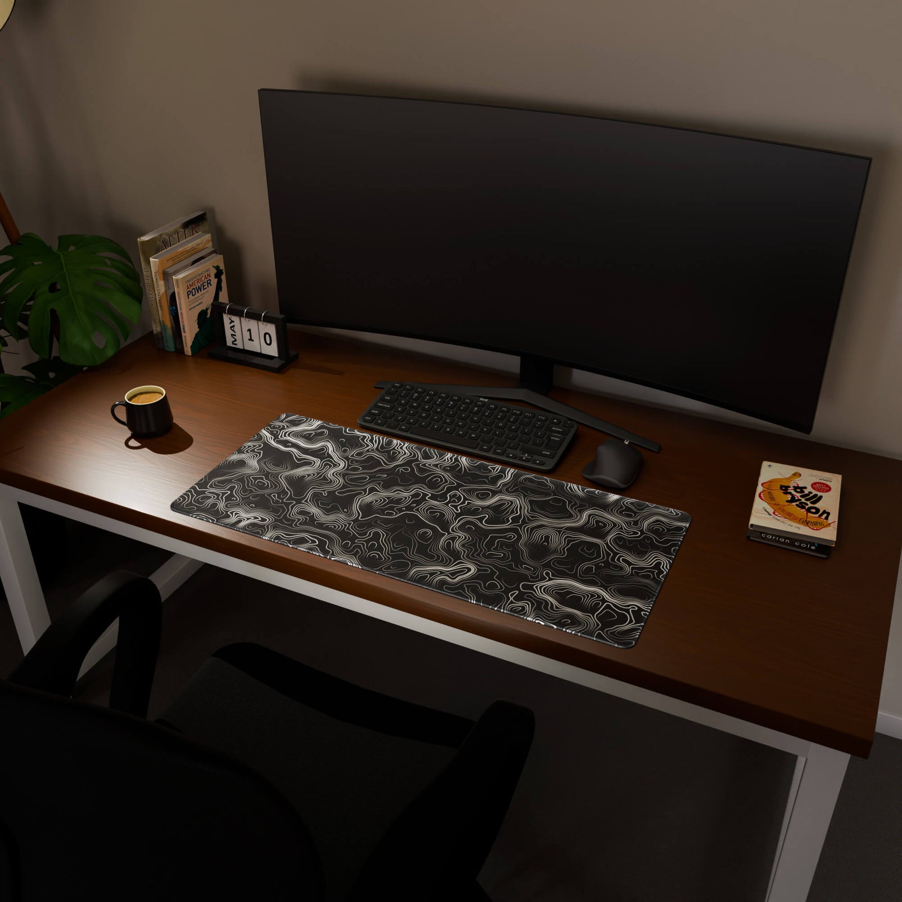 • For Minimalist: This is the ultimate topographic mousepad (black and white) for fans of clean design. As the perfect minimalist deskmat, it's the ideal centerpiece for achieving a clean black and white desk setup. This large topographic mousepad adds a touch of sleek, modern style to any WFH or gaming station.