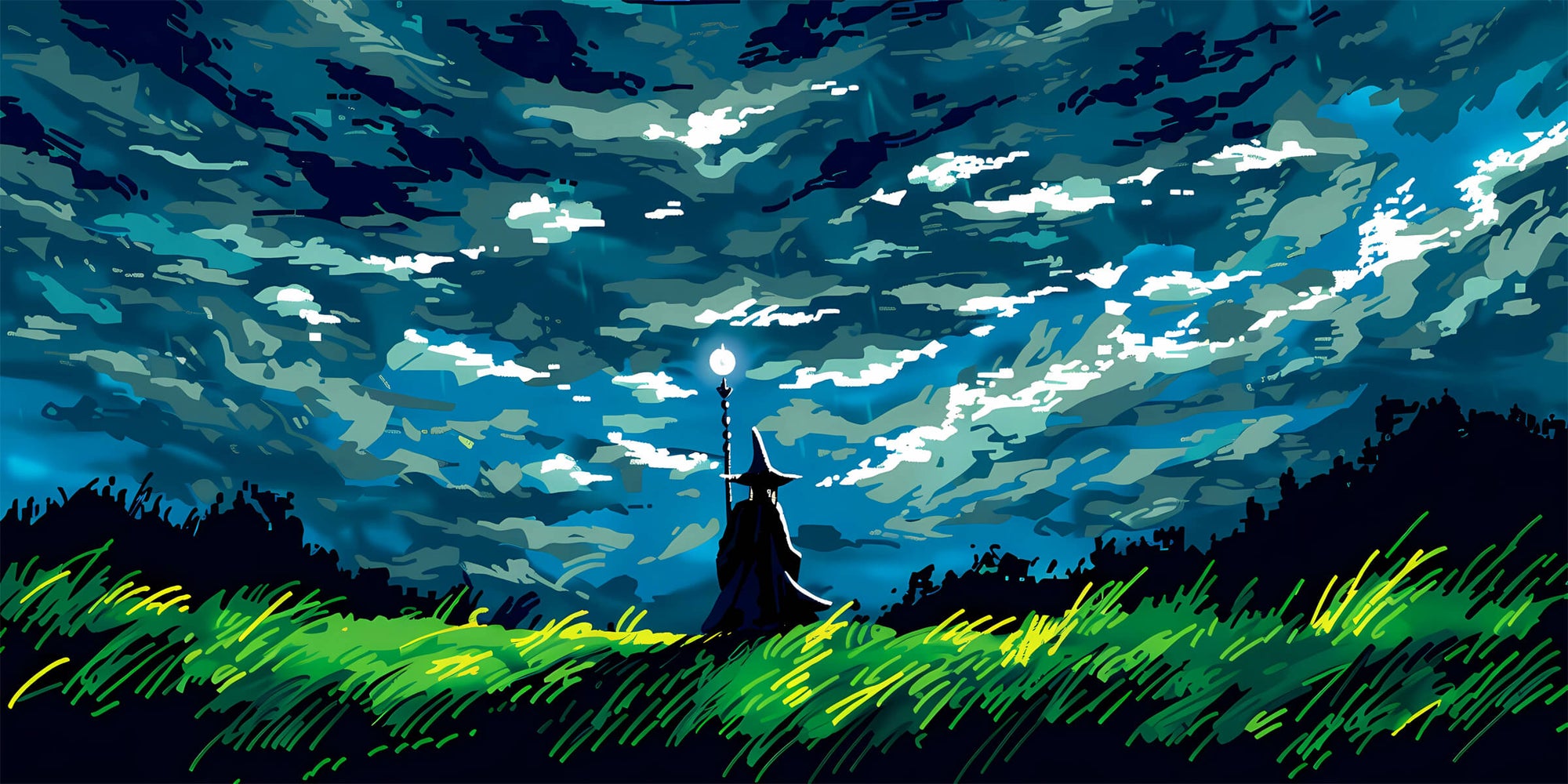 "Please remove the black background of the character, center the character and have the cloud image as the background"
