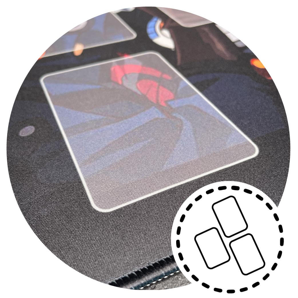 - Our design team edit your image(s) to fit your playmat size and add your desired card zone layout. We'll then send you an email of what your playmat will look like when printed - so you can suggest further edits, or approve for printing